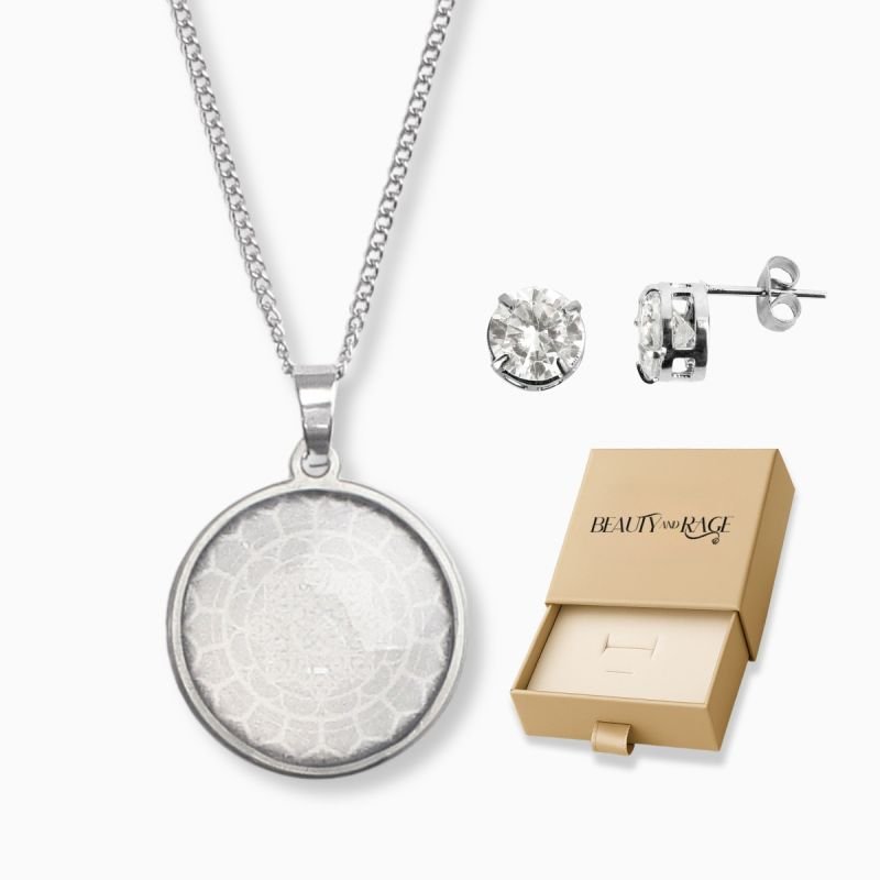Kit Paz Colar Mandala Branca M1 e Brinco Zircônia 8mm